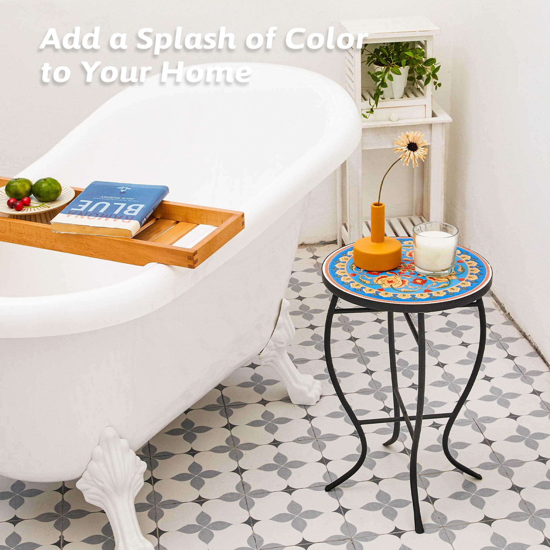 Bestco Mosaic Side Table Ceramic Tile Top 14 Round Plant Stand For Patio Blue Faberge Walmart Com